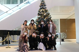 後援会支援による特大クリスマスツリーと、生活科学部 生活環境学科 塚原肇教授プロダクトデザイン研究室作成の吊り下げ式イルミネーションは、学友会執行委員会と常磐祭実行委員会の学生たちによって飾り付けられました。