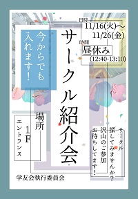 現在渋谷キャンパスでは、学友会執行委員会主催のサークル紹介会を実施しています。