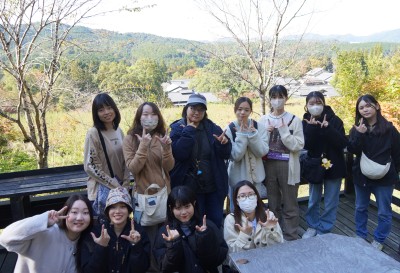 今回の研修は、単なる企業見学にとどまらず、国文学の学びが社会の中でどのように生かされうるのかを実感する貴重な機会となりました。伝統と革新の調和を体現する叶匠壽庵の姿勢は、学生たちにとって、自らの将来を考えるうえでも大きな示唆を与えるものでした。私は今回の研修を通して、国文学の学びが企業活動と結びつく現場を実際に見ることができ、大きな刺激を受けました。特に、万葉集や源氏物語といった古典文学が、商品名や包装、広報へと具体的に生かされている点は、文学が社会の中でどう存在しているのかを実感する貴重な体験となりました。また、社員の方々が「若気の至り」を尊重し、挑戦を奨励する姿勢からは、企業の柔軟さと温かさが伝わり、自分自身も失敗を恐れず前きに挑戦していきたいと感じました。学びの意義を再確認できた研修でした。(国文学科3年、三友恵美)