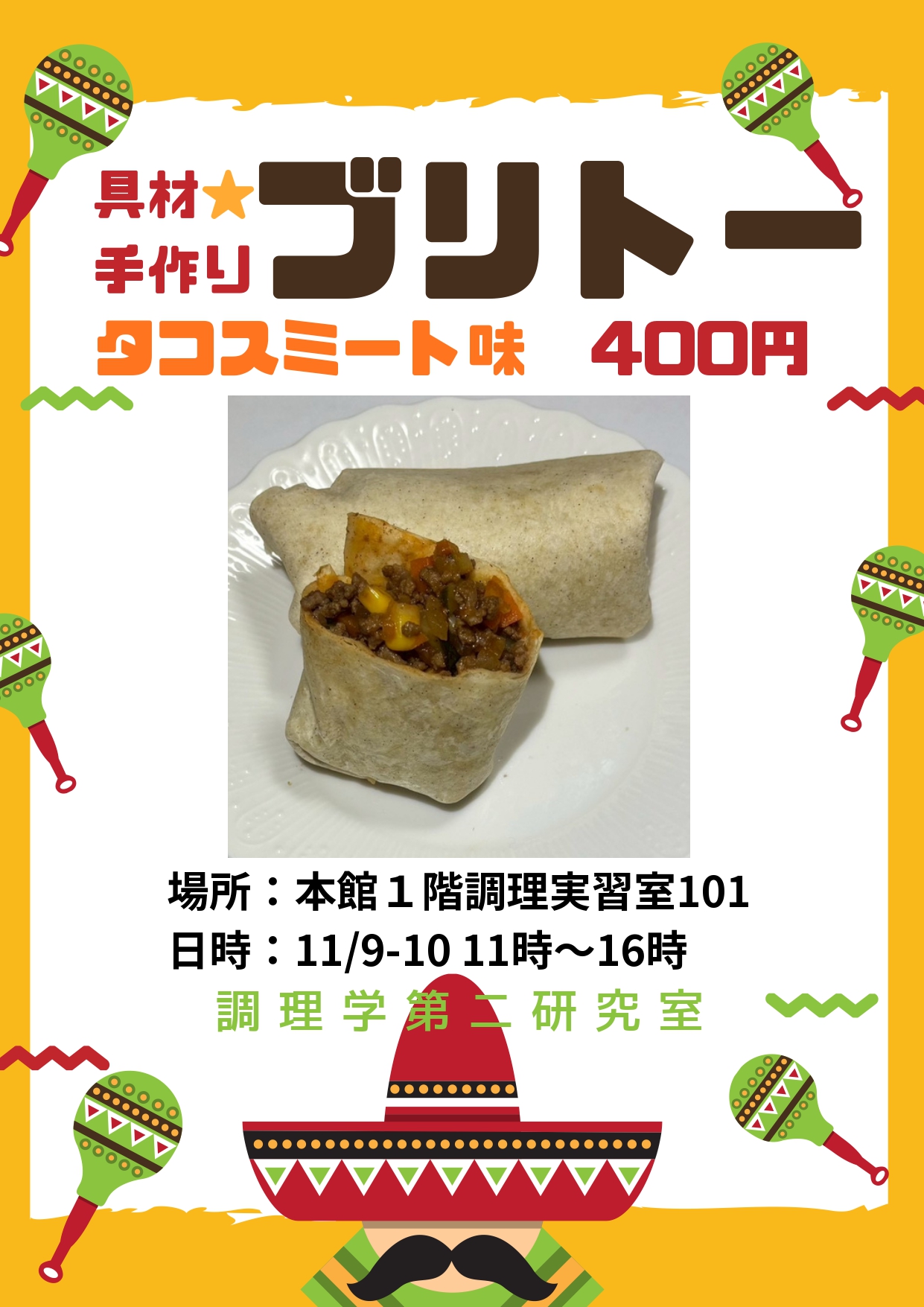 今年はトルティーヤの生地で色々な具材を包んだ料理「ブリトー」を販売します。今日だけの特別な味を是非!!