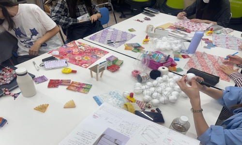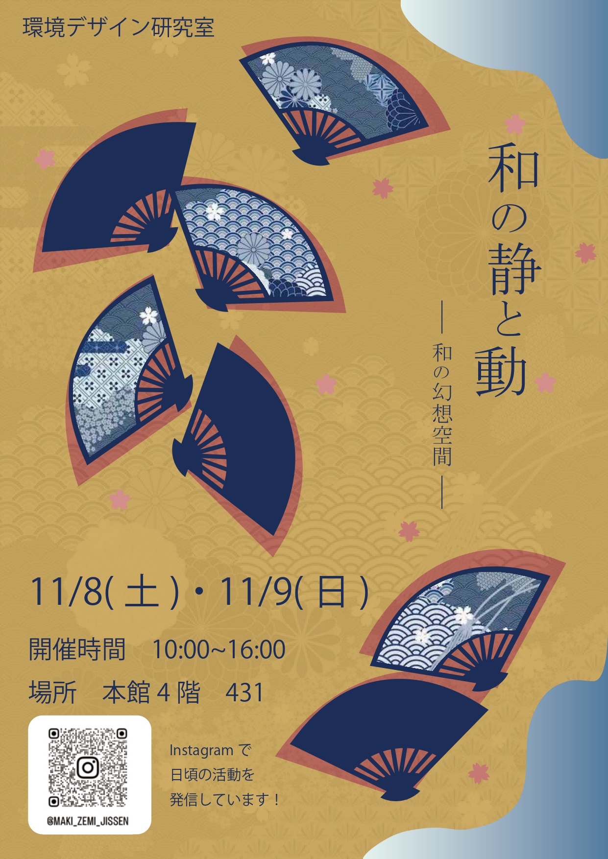 環境デザイン研究室です🏮今年の常磐祭では『和の静と動』をテーマに昔の京都が舞台の作品の展示を行います。和の儚さ『静』と鮮やかさ『動』を強調させた美しい作品や装飾で世界観を再現しました!私たち研究室の学生たちの活動記録も掲示しているので、ぜひお越しください✨