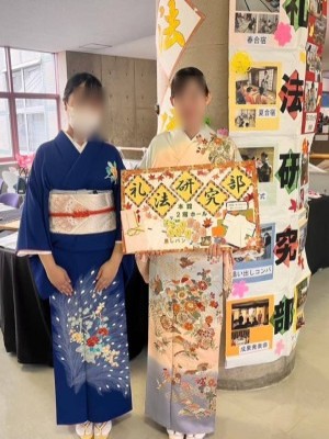 各キャンパス週1回のお稽古や合宿・イベントを通して着物の着付けや日本の伝統文化、テーブルマナーや就活でも活かせるようなビジネスマナーを中心に日常でも役に立つ札義作法を学んでおります。