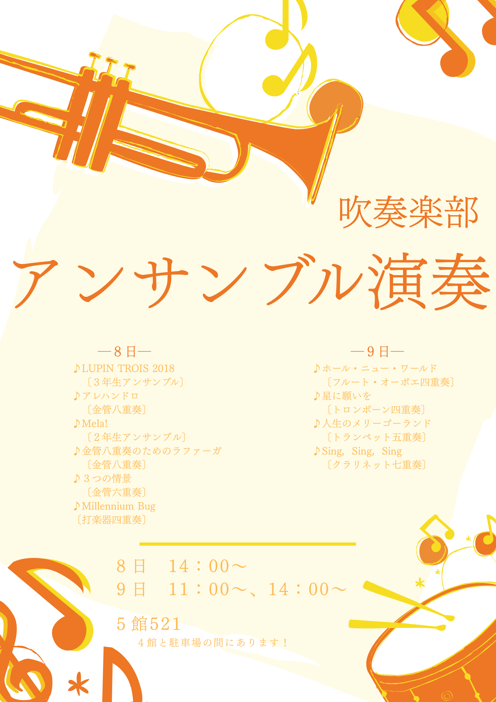 5館521にて演奏及び楽器体験を行います!ぜひお越しください♪