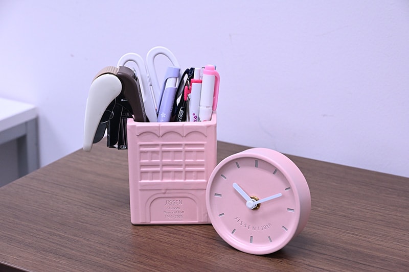 さらに、10万円以上ご寄付いただいた方には、創立130周年限定のミニ置き時計をフリーカップとセットでお届けします。ミニ置き時計の文字盤には「JISSEN 130th」、側面には中高・大学の校章をあしらっています。