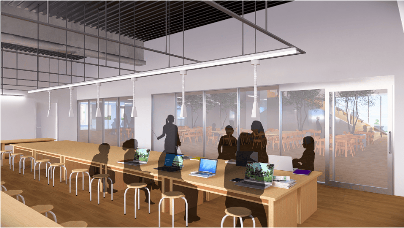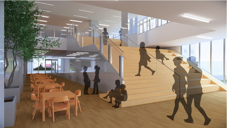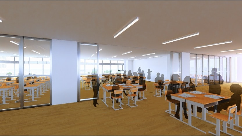 教室を開放すればクラスを越えて学び合える空間に。広い廊下も、生徒の新たな居場所として活用できます。