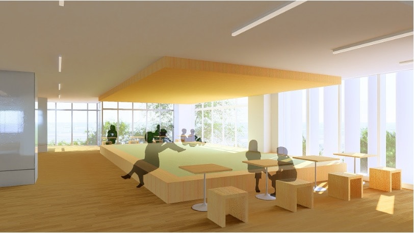 靴を脱いでくつろげる、「生徒の声から生まれた」安らぎのスペースです。